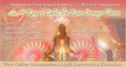 2025-11-25 | New online transmission of light experience Blissful Union of Heaven and Earth within the Rose-Orange Flame ~ to Awaken and Embody your Authentic Soul Gifts and Spiritual Mission Come bathe in thenourishing radiant lightof theRose-Orange Ray. When one begins to work with the buoyant and effervescent rose orange ray, you feel its blissful uplifting effect, immediately nourishing your mind/body/soul ... |